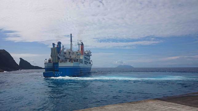 平島を離れるフェリー十島 向こうに見えるのは諏訪瀬島