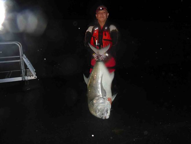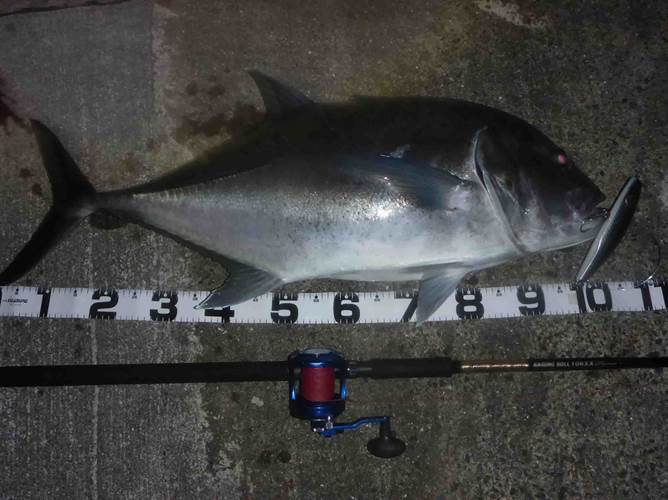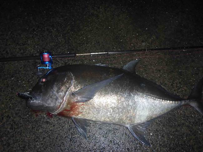 その後、隣で一緒に釣りをしていた人が竿を折りながらも30キロオーバーのGTをゲット。